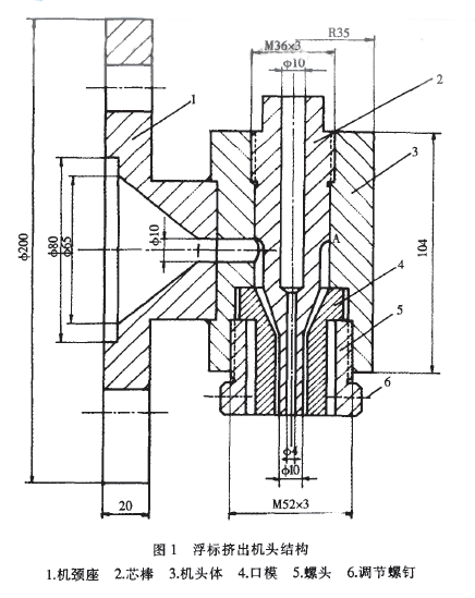 擠出機(jī)頭結(jié)構(gòu)如圖1所示。