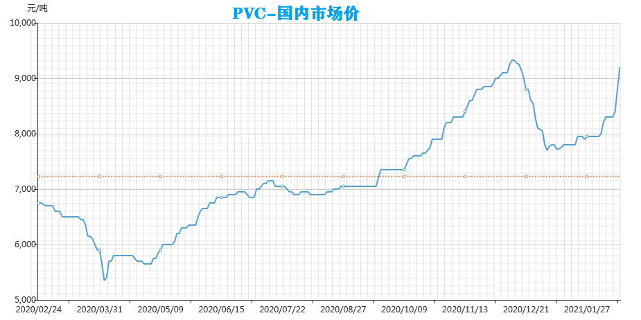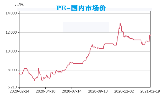 2021年春節(jié)一過,塑料原材料行情受開工率企高影響,全面逆勢(shì)上漲,除了個(gè)別維持高位震蕩以外,PVC等原材料的價(jià)格都出現(xiàn)了直線上升的態(tài)勢(shì),預(yù)計(jì)此行情還將至少持續(xù)兩個(gè)月。